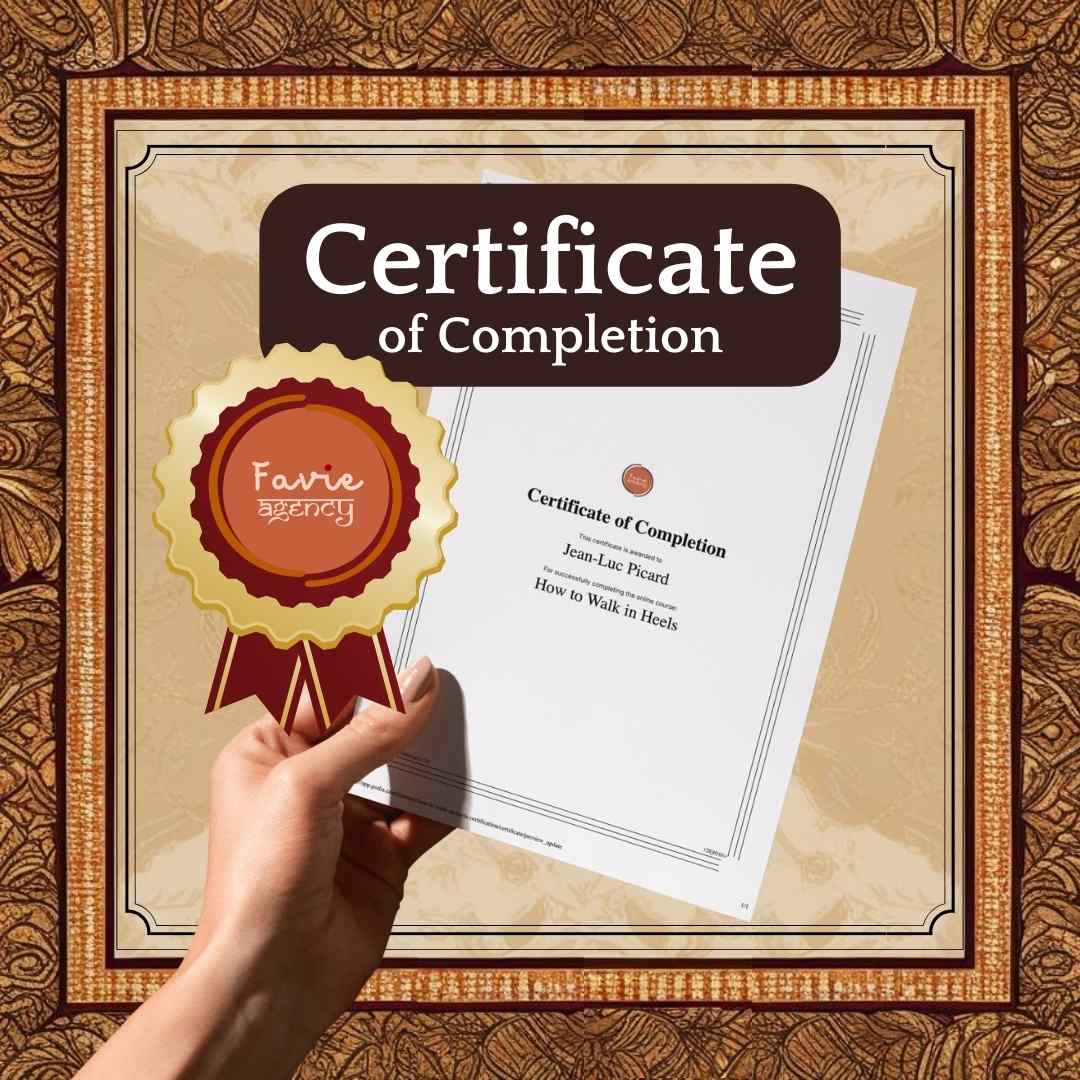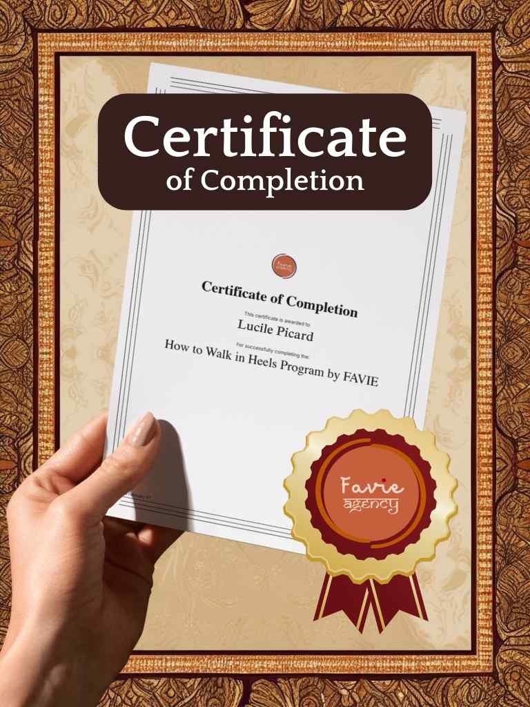 Earn Your Official Certification! Congratulations on taking the next step toward mastering your walk with elegance and confidence. You are now eligible to begin the How to Walk in Heels Program certification process. This certification validates your expertise in body coordination for walking in heels and flats, including posture, balance, and graceful movement—all grounded in the FAVIE Method.